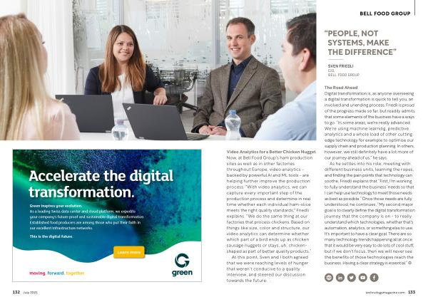 Green inspires your evolution . As a leading Swiss data center and cloud platform , we expedite your company ’ s future-proof and sustainable digital transformation . Established food producers are among those who put their faith in our excellent infrastructure networks .