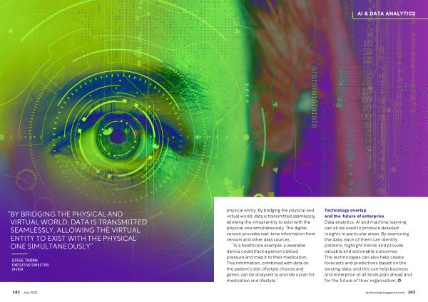 AI & DATA ANALYTICS physical entity . By bridging the physical and virtual world , data is transmitted seamlessly , allowing the virtual entity to exist with the physical one simultaneously . The digital version provides real-time information from sensors and other data sources .