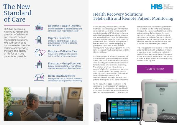 HRS has become a nationally-recognized provider of telehealth and remote patient monitoring solutions . HRS will continue to innovate to further the mission of improving the care and quality of life for as many patients as possible .