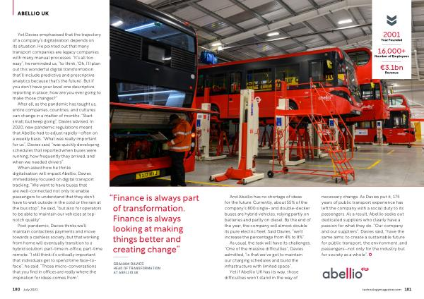 When asked how he thinks digitalisation will impact Abellio , Davies immediately focused on digital transport tracking . “ We want to have buses that are well-connected not only to enable passengers to understand that they don ’ t have to wait outside in the cold or the rain at the bus stop ”, he said , “ but also for operators to be able to maintain our vehicles at topnotch quality ”.