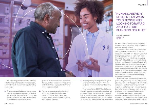 Then came March 2020 . The challenges of any integration are complex , detailed , and personal . When the pandemic hit , teams had to shift to working remotely overnight , adding an unimaginable layer of complexity . To address this , Rayapureddy quickly divided his team in two – one to focus on the shift to remote work and one to keep integration planning moving forward .