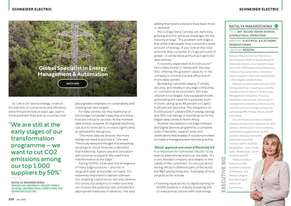 Natalya Makarochkina is the Senior Vice President ( SVP ) of Secure Power at Schneider Electric , on a mission to lead more than 1000 seasoned professionals in delivering sustainable , innovative ways to support customers and partners in their digital transformation .
