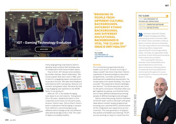 After all , IGT is the leader bringing new ideas to an old industry . ‘ Going back 20 or 30 years , leadership teams in the corporate world were not all particularly diverse ’, Kamm says . ‘[ Since then ], there ’ s been a realisation that bringing in people from different cultural backgrounds , different ethnic backgrounds , and different educational backgrounds is vital . The clash of ideas is incredibly healthy ’.