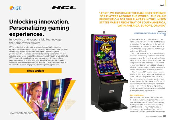 What ’ s more , IGT can no longer focus solely on the player base that ’ s pulled the same slots for the generations . Instead , Kamm explains , gaming companies must drive demand for the next wave . To do so , the company is capitalising on two major areas of innovation : developing mobile gaming apps and facilitating personalised AI gaming and resort experiences .