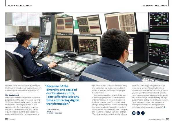 The Road Ahead Santos and his team have made incredible progress over the past few years , leaving JG Summit Holdings far better prepared to meet the challenges and seize the opportunities the future holds . However , there is still work to be done , and Santos is quick to point out that past successes are no justification for the department to