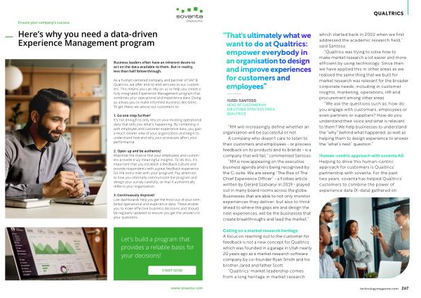 As a human-centered company and partner of SAP & Qualtrics , we offer end-to-end services to our customers . This means you can rely on us to help you create a fully-integrated Experience Management program that combines your operational and experience data . Doing so allows you to make informed business decisions . To get there , we advise our customers to :