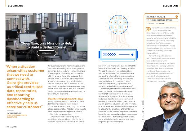 HARNISH KANANI CHIEF CUSTOMER OFFICER , CLOUDFLARE for cybersecurity and networking solutions , and they are coming to us . When you are building a global culture , you need to make sure that your customers are taken care of 24 / 7 around the world because their people , their customers , and the people who use the services and products are around the world and at all times of the day . So it ’ s important to wake up every day to serve our customers . And that culture of customer success is what we are trying to build around the world ”.