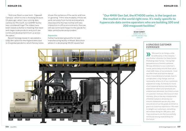 “ And now there ' s a new term : ‘ Gigawatt Campus ’, which to me is shocking because 10 years ago , when I was running data centres for Microsoft , our 120MW facility was considered huge ! The stakes have been raised so Kohler is meeting that need with larger scale products and you ' ll see continued development from us across the space .”