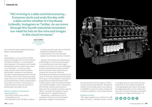 SEAN FARNEY , DIRECTOR , DATA CENTRE MARKETING , KOHLER environmental responsibility that reflects global sustainability goals .”
