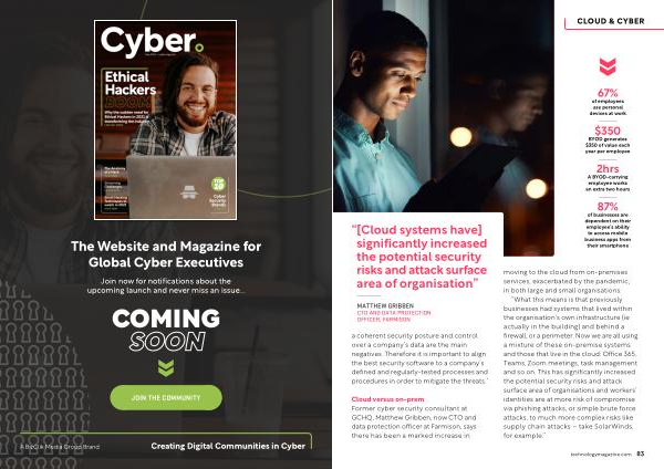 “ What this means is that previously businesses had systems that lived within the organisation ’ s own infrastructure ( ie actually in the building ) and behind a firewall , or a perimeter . Now we are all using a mixture of these on-premise systems and those that live in the cloud : Office 365 , Teams , Zoom meetings , task management and so on . This has significantly increased the potential security risks and attack surface area of organisations and workers ’ identities are at more risk of compromise via phishing attacks , or simple brute force attacks , to much more complex risks like supply chain attacks – take SolarWinds , for example .” technologymagazine . com 83