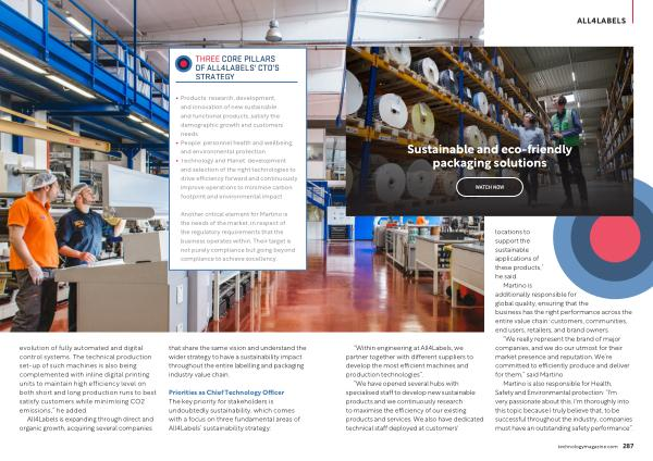 Priorities as Chief Technology Officer The key priority for stakeholders is undoubtedly sustainability , which comes with a focus on three fundamental areas of All4Labels ’ sustainability strategy :
