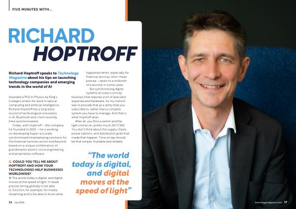 Richard Hoptroff speaks to Technology Magazine about his tips on launching technology companies and emerging trends in the world of AI