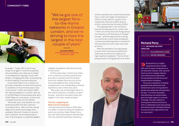 will be reached soon , while the business has a north star target of reaching 1.3 million homes able to connect to its network by the end of 2023 , and 2.2 million customers by the end of 2024 . This rapid growth is one of Perry ’ s favourite things about his current role . “ I think one of my favourite things about the industry is the fast pace of change ,” he says , “ and the opportunity to bring our customers much faster and better connectivity allowing them to transform the way they can work , learn and relax at home .”