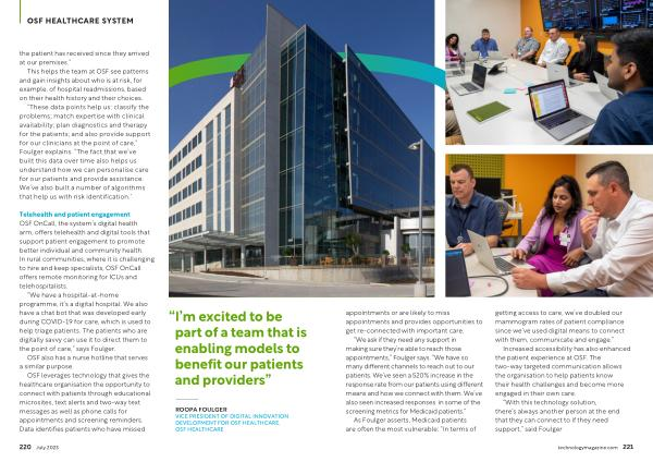 Increased accessibility has also enhanced the patient experience at OSF . The two-way targeted communication allows the organisation to help patients know their health challenges and become more engaged in their own care .