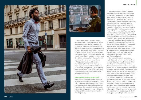 One incredible public sector case study that really summarises ServiceNow ’ s speed and agility is the U . S . Embassy Kabul Repatriation Assistance Request App . An extremely mission critical low-code app built by the US State Department to repatriate citizens in the wake of the US withdrawal from Afghanistan in 2021 , the US Department of State is one of ServiceNow ’ s largest Creator Workflows App Engine customers with 130,000 employees and 257 embassies worldwide conversing in multiple languages across many different cultures . Clearly , the needs here are varied and extraordinarily complex . When the decision was made by the US government to evacuate Afghanistan following the Taliban ’ s return to government , the department needed a way to deal with the huge volume of repatriation requests .