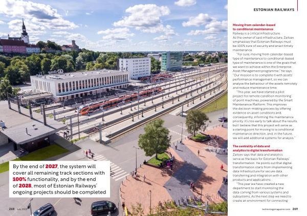 “ This year , we have started a pilot project for remote condition monitoring of point machines , powered by the Smart Maintenance Platform . This improves the decision-making process by offering evidence on asset conditions and , consequently , informing the maintenance priority . It ’ s too early to talk about the results , but I believe that this project will serve as a starting point for moving to a conditional maintenance direction , and , in the future , we will add additional systems for analysis .”