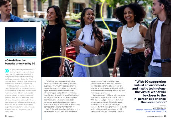 “ Extended reality ( XR ) and full immersive experiences require data transfer rates of 200Mbps to 5Gbps – far beyond what is currently possible with 5G . 6G , however , certainly holds promise in this regard , because it will utilise higher frequency bands and is said to provide speeds up to 100- times faster than 5G . This will be crucial to
