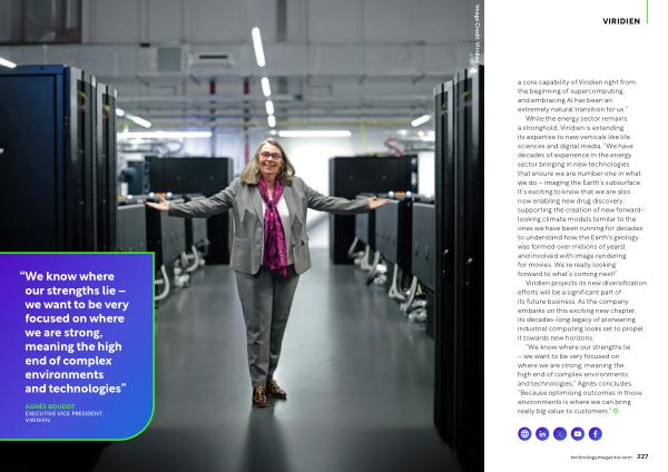 “ We know where our strengths lie – we want to be very focused on where we are strong , meaning the high end of complex environments and technologies ,” Agnès concludes . “ Because optimising outcomes in those environments is where we can bring really big value to customers .” technologymagazine . com 227