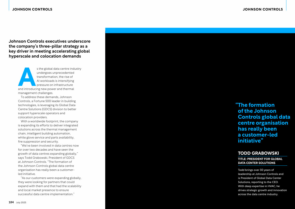 Johnson Controls executives underscore the company’ s three-pillar strategy as a key driver in meeting accelerating global hyperscale and colocation demands