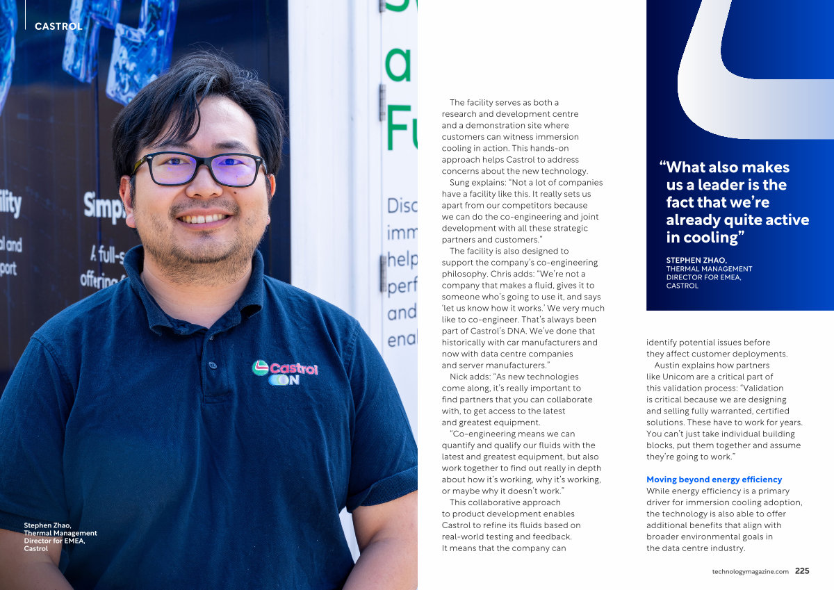 The facility serves as both a research and development centre and a demonstration site where customers can witness immersion cooling in action. This hands-on approach helps Castrol to address concerns about the new technology.