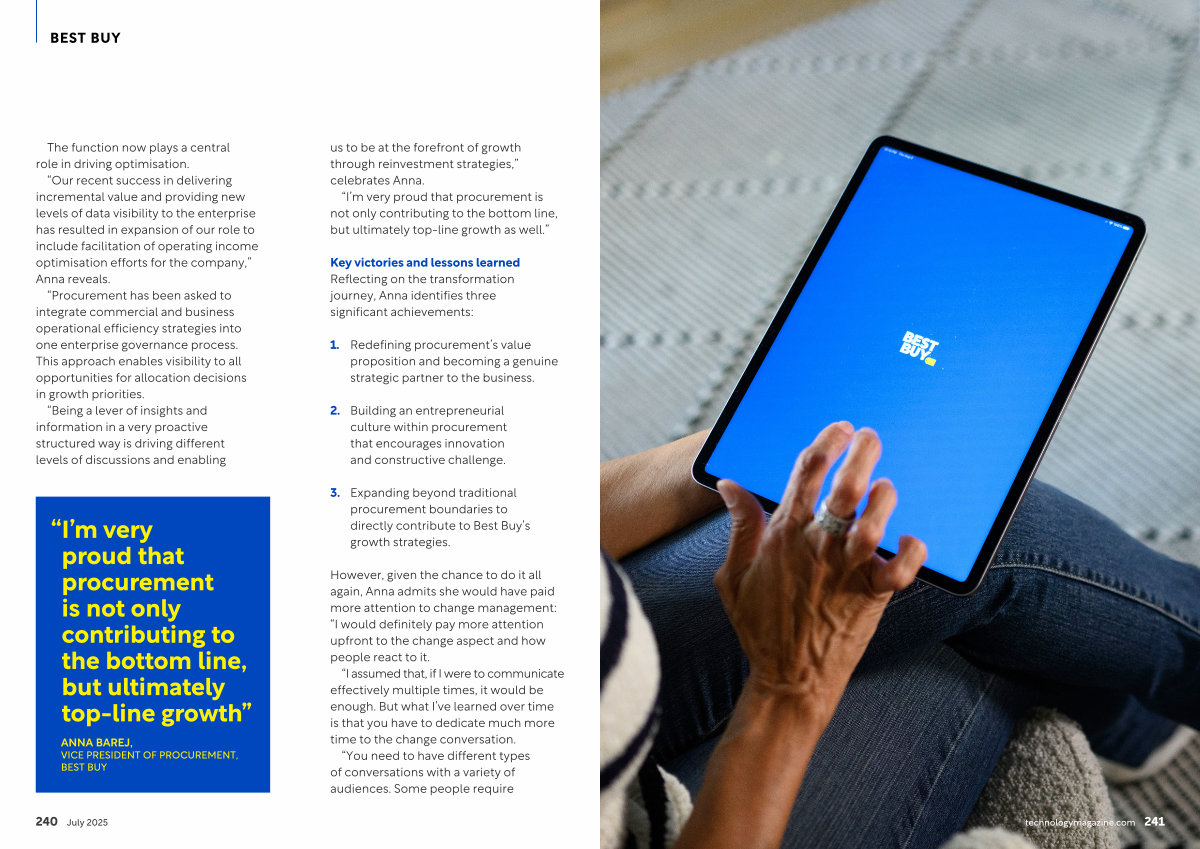ANNA BAREJ, VICE PRESIDENT OF PROCUREMENT, BEST BUY us to be at the forefront of growth through reinvestment strategies,” celebrates Anna.