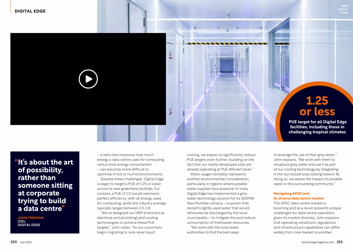 Water usage inevitably represents another environmental consideration, particularly in regions where potable water supplies face pressure. In India, Digital Edge has implemented a grey water technology solution for its 300MW Navi Mumbai campus – a system that reclaims lightly used water that would otherwise be discharged by the local municipality – to mitigate this and reduce consumption of freshwater resources.