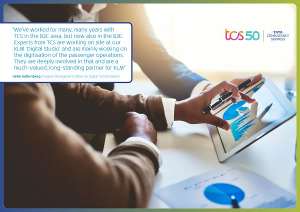 “ We ’ ve worked for many , many years with TCS in the B2C area , but now also in the B2E . Experts from TCS are working on site at our KLM ‘ Digital Studio ’ and are mainly working on the digitisation of the passenger operations . They are deeply involved in that and are a much-valued , long-standing partner for KLM ”