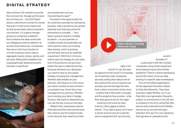 data in the cloud ? Or can the data be adjacent to the cloud ? For example , we ’ re starting to see companies securely putting their data at rest at the centre of the cloud in Equinix but actually use and leverage the tools from a direct connection to the cloud - whether that ’ s Microsoft or Google and the analytics they provide - while their data goes at rest on the edge .”