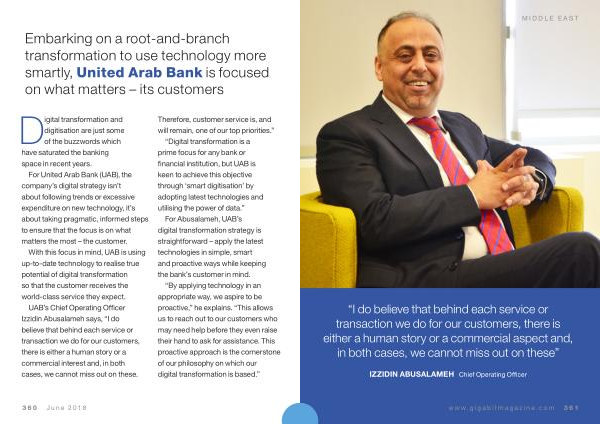 Embarking on a root-and-branch transformation to use technology more smartly , United Arab Bank is focused on what matters – its customers