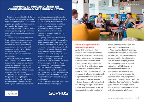 Sophos y Talisis Project conforman una asociación tecnológica a largo plazo , donde predominan la especialización y el servicio personalizado en materia de seguridad perimetral , y la integración de Technology de innovación que permite a Talisis Project hacer frente a las amenazas que ponen en riesgo su red en las áreas educativa y administrativa .