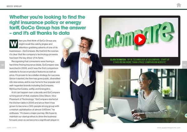 W hen you first think of GoCo Group you might recall the catchy jingles and attention-grabbing adverts of one of its businesses – GoCompare . But behind the scenes it ’ s clear that the company ’ s technology prowess has been the key driver of its fame .