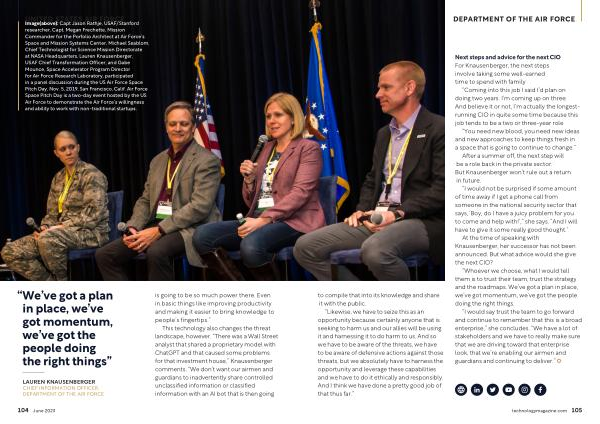 LAUREN KNAUSENBERGER CHIEF INFORMATION OFFICER , DEPARTMENT OF THE AIR FORCE is going to be so much power there . Even in basic things like improving productivity and making it easier to bring knowledge to people ’ s fingertips .”