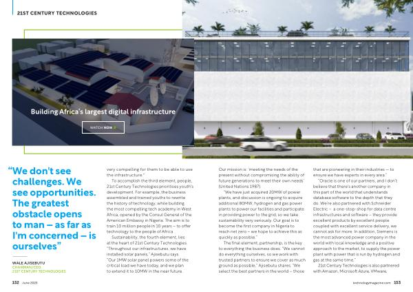 “ We have just acquired 20MW of power plants , and discussion is ongoing to acquire additional 80MW , hydrogen and gas power plants to power our facilities and participate in providing power to the grid , so we take sustainability very seriously . Our goal is to become the first company in Nigeria to reach net zero – we hope to achieve this as quickly as possible .”