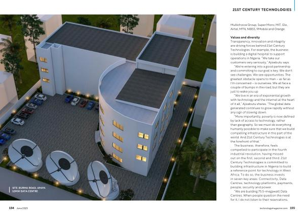 The business , therefore , feels compelled to participate in the fourth industrial revolution , having missed out on the first , second and third . 21st Century Technologies is committed to building infrastructure in Nigeria to build a reference point for technology in West Africa . To do so , the business invests in seven key areas : Connectivity , Data Centres , technology platforms , payments , people , security and power .