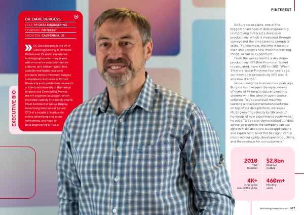 Data Engineering at Pinterest . He has over 25 years ’ experience building high-performing teams with innovative and collaborative cultures , and delivering intuitive , scalable and highly-available products . Before Pinterest , Burgess completed a doctorate at Oxford University and postdoctoral research at Stanford University in Numerical Analysis and Computing . He was the 4th engineer at E2open , which provided visibility into supply chains , Chief Architect of Global Display Advertising Solutions at Yahoo !, CTO of a couple of startups in online advertising and social networking , and head of Data Engineering at Twilio .