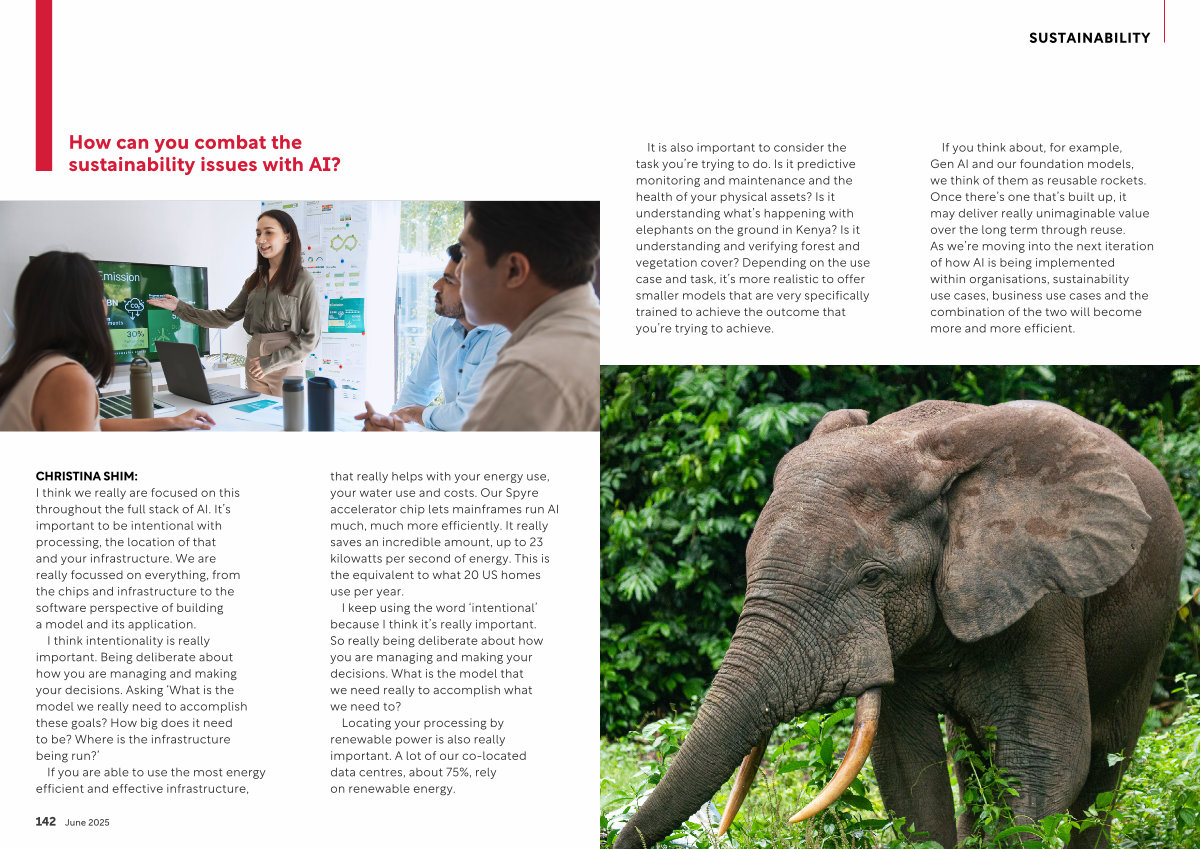 If you think about, for example, Gen AI and our foundation models, we think of them as reusable rockets. Once there’ s one that’ s built up, it may deliver really unimaginable value over the long term through reuse. As we’ re moving into the next iteration of how AI is being implemented within organisations, sustainability use cases, business use cases and the combination of the two will become more and more efficient.