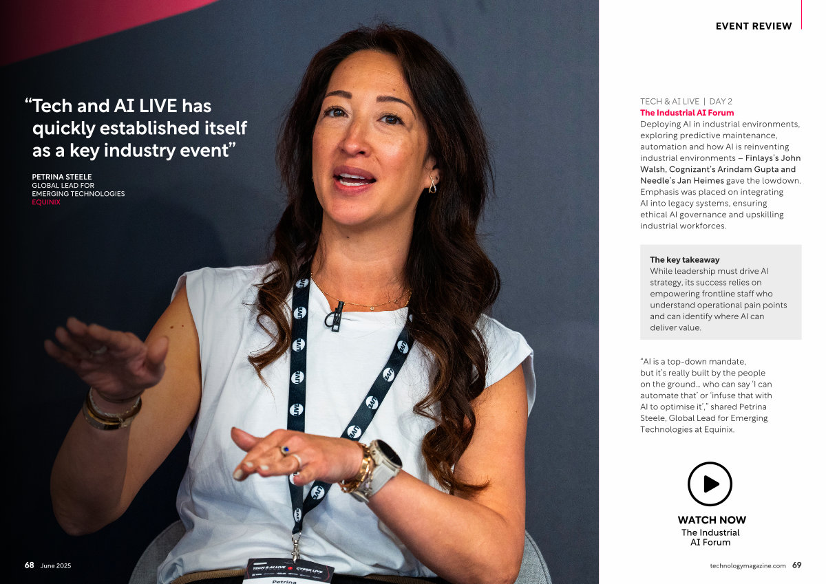 TECH & AI LIVE | DAY 2 The Industrial AI Forum Deploying AI in industrial environments, exploring predictive maintenance, automation and how AI is reinventing industrial environments – Finlays’ s John Walsh, Cognizant’ s Arindam Gupta and Needle’ s Jan Heimes gave the lowdown. Emphasis was placed on integrating AI into legacy systems, ensuring ethical AI governance and upskilling industrial workforces.