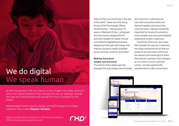 ASIA more so than you would see in the rest of the world ,” observes AXA Hong Kong ’ s Chief Technology Officer Darrell Ryman . “ Having spent 10 years in Mainland China , I witnessed how the country skipped the PC and went straight to mobile . We are committed to digitalising business deployment through technology and making insurance readily available across devices , anytime , anywhere .”