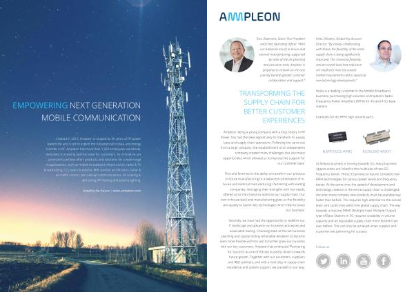 Secondly , we have had the opportunity to redefine our IT landscape and advance our business processes and associated tooling . Choosing state-of-the-art business planning and supply tooling will enable Ampleon to become even more flexible with the aim to further grow our business with our key customers . Ampleon has embraced “ Partnering for Success ” as one of the key business drivers towards future growth . Together with our customers , suppliers and R & D partners , and with a next step in supply chain excellence and system support , we are well on our way .