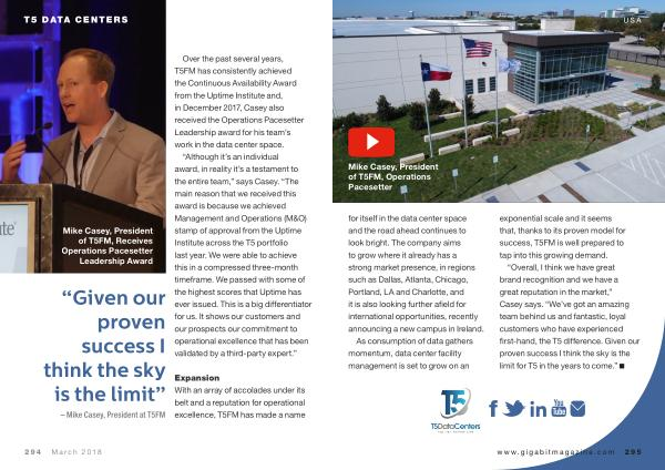 “ Overall , I think we have great brand recognition and we have a great reputation in the market ,” Casey says . “ We ’ ve got an amazing team behind us and fantastic , loyal customers who have experienced first-hand , the T5 difference . Given our proven success I think the sky is the limit for T5 in the years to come .” www . gigabitmagazine . com 295