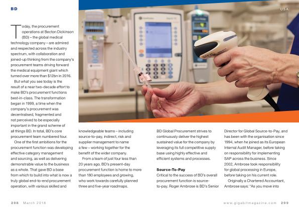Source-To-Pay Critical to the success of BD ’ s overall procurement function is sourceto-pay . Roger Ambrose is BD ’ s Senior