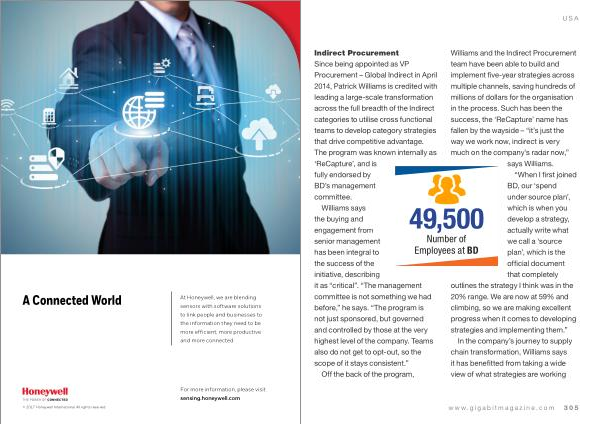 Indirect Procurement Since being appointed as VP Procurement – Global Indirect in April 2014 , Patrick Williams is credited with leading a large-scale transformation across the full breadth of the Indirect categories to utilise cross functional teams to develop category strategies that drive competitive advantage . The program was known internally as ‘ ReCapture ’, and is fully endorsed by BD ’ s management committee .