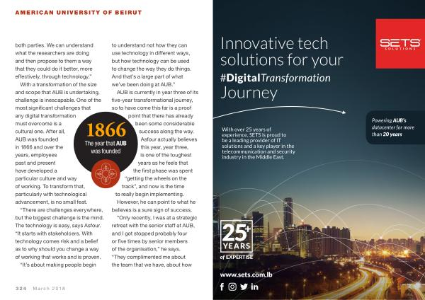 With a transformation of the size and scope that AUB is undertaking , challenge is inescapable . One of the most significant challenges that any digital transformation must overcome is a cultural one . After all , AUB was founded in 1866 and over the years , employees past and present have developed a particular culture and way of working . To transform that , particularly with technological advancement , is no small feat .