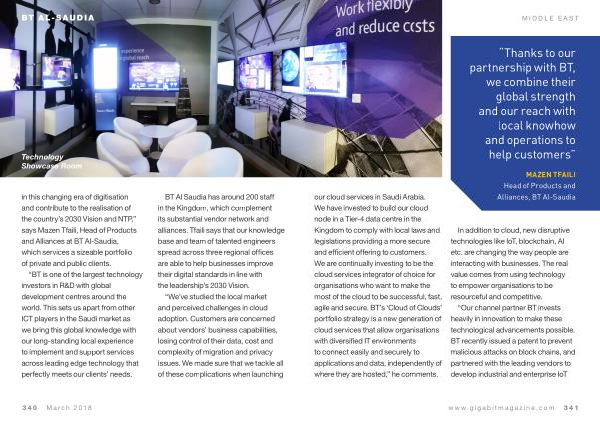 our cloud services in Saudi Arabia . We have invested to build our cloud node in a Tier-4 data centre in the Kingdom to comply with local laws and legislations providing a more secure and efficient offering to customers . We are continually investing to be the cloud services integrator of choice for organisations who want to make the most of the cloud to be successful , fast , agile and secure . BT ’ s ‘ Cloud of Clouds ’ portfolio strategy is a new generation of cloud services that allow organisations with diversified IT environments to connect easily and securely to applications and data , independently of where they are hosted ,” he comments .