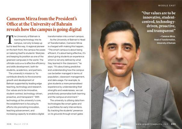 Cameron Mirza from the President ’ s Office at the University of Bahrain reveals how the campus is going digital
