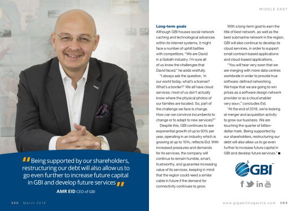 Despite this , GBI continues to see exponential growth of up to 50 % per year , operating in an industry which is growing at up to 10 %, reflects Eid . With increased pressures and demands for its services , the company will continue to remain humble , smart , trustworthy , and guarantee increasing value of its services , keeping in mind that the region could need a similar cable in future if the demand for connectivity continues to grow .