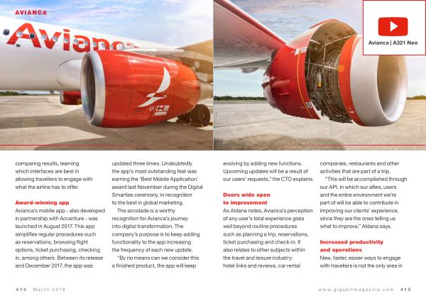 Award-winning app Avianca ’ s mobile app - also developed in partnership with Accenture - was launched in August 2017 . This app simplifies regular procedures such as reservations , browsing flight options , ticket purchasing , checking in , among others . Between its release and December 2017 , the app was updated three times . Undoubtedly the app ’ s most outstanding feat was earning the ‘ Best Mobile Application ’ award last November during the Digital Smarties ceremony , in recognition to the best in global marketing . The accolade is a worthy recognition for Avianca ’ s journey into digital transformation . The company ’ s purpose is to keep adding functionality to the app increasing the frequency of each new update .