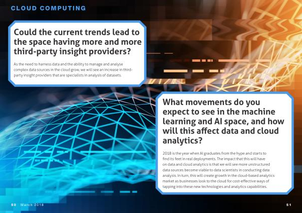 As the need to harness data and the ability to manage and analyse complex data sources in the cloud grow , we will see an increase in thirdparty insight providers that are specialists in analysis of datasets .