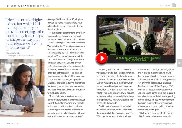 “ A bunch of people from the university have made a difference to the world , not just to their local community ,” reflects UWA ’ s Chief Digital & Information Officer , Warwick Calkin . “ The indigenous people that lived in this part of Australia , the Noongar people , came to this area for learning . They bought people to this part of the world and taught them here , so it was actually a university way before it was a university , so to speak . However , the education sector has changed significantly . The days of having someone stand at the front , and ‘ chalk and talk ’ no longer appeals . Students are used to having something far more dynamic , far more interactive , and want tools that give them the ability to exchange ideas .