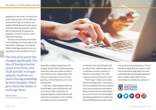 271 worldwide . New technologies will be able to then authenticate a user ’ s credentials across a number of different universities . For UWA , however , what is its long-term aim ?